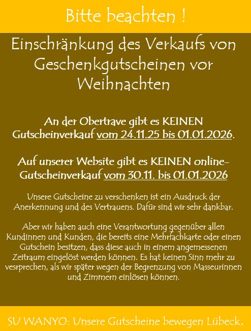 Auf unserer Website gibt es KEINEN online-Gutscheinverkauf vom 30.11. bis 01.01.2026